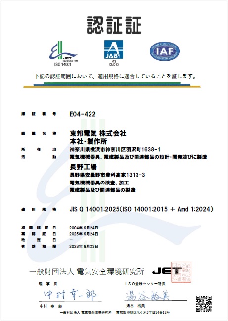 2適用規格:JIS Q 14001:2015 (ISO 14001:2015)